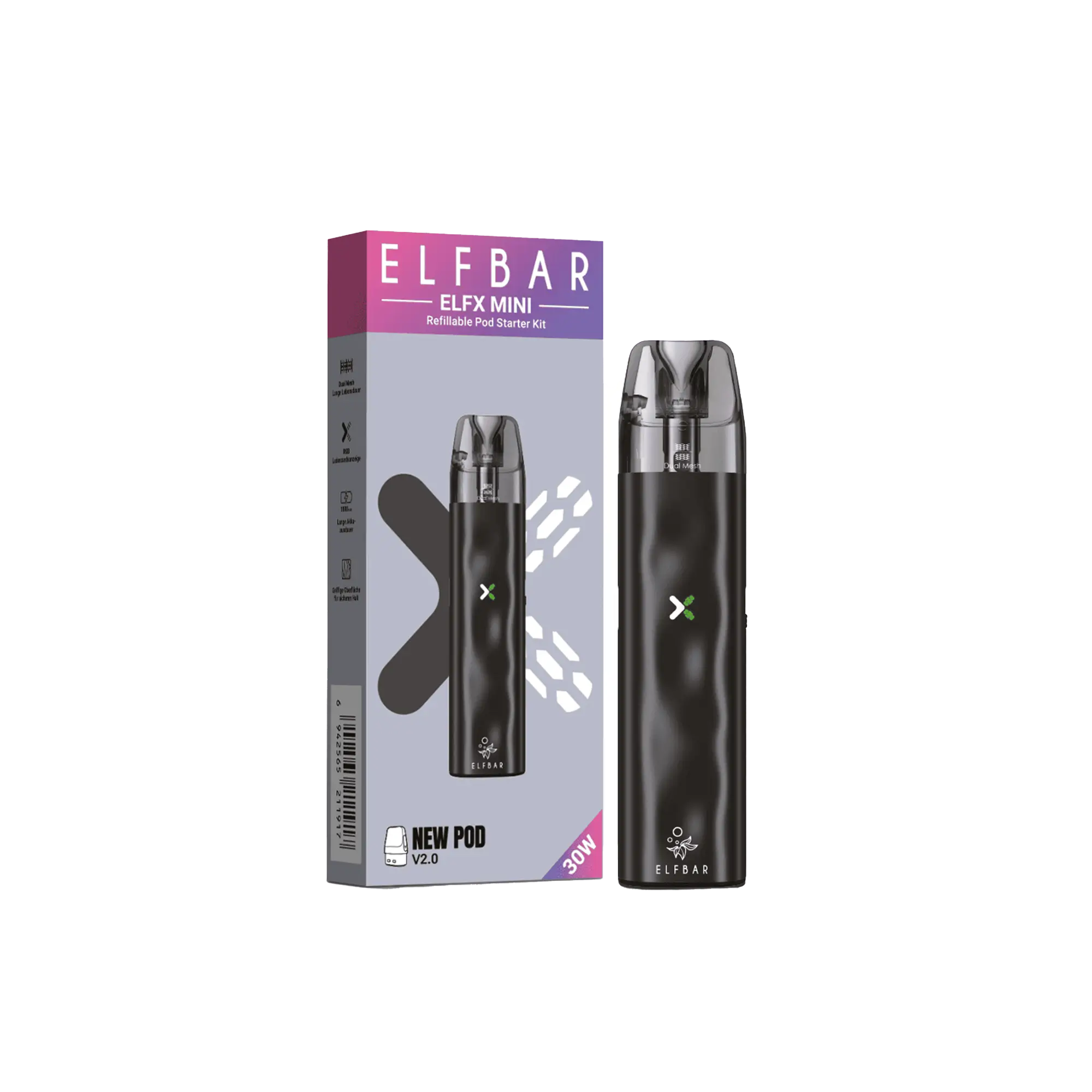 | Enthaltener Pod: | ELFX V2.0 Dual Mesh Pod (0,8 Ω) |
