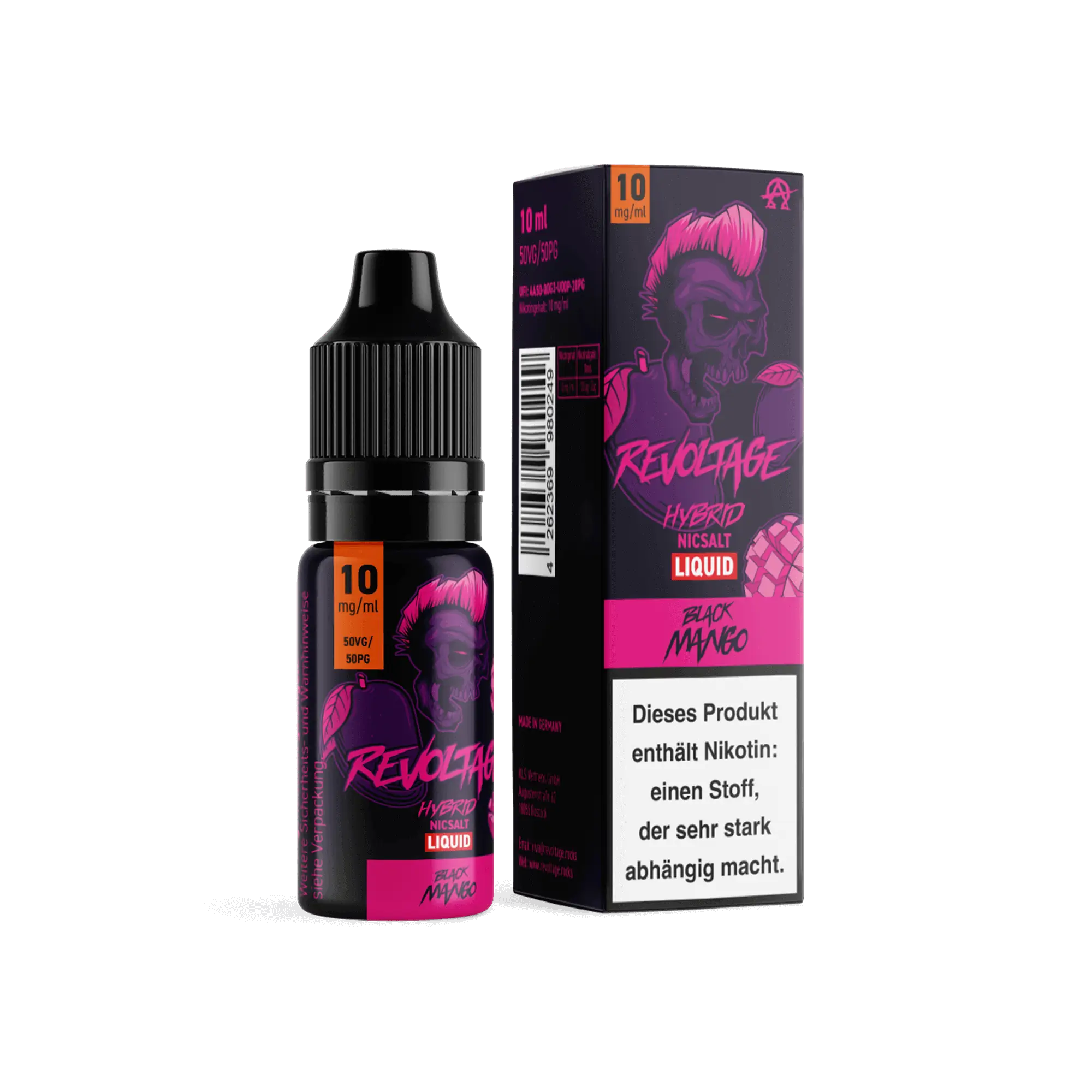 Das Revoltage Black Mango Hybrid Nikotinsalz Liquid wird in Deutschland unter höchsten Qualitätsstandards produziert und ist in den Stärken 0 mg/ml, 10 mg/ml und 20 mg/ml erhältlich. Es eignet sich optimal für Pod-Systeme und MTL-Geräte.