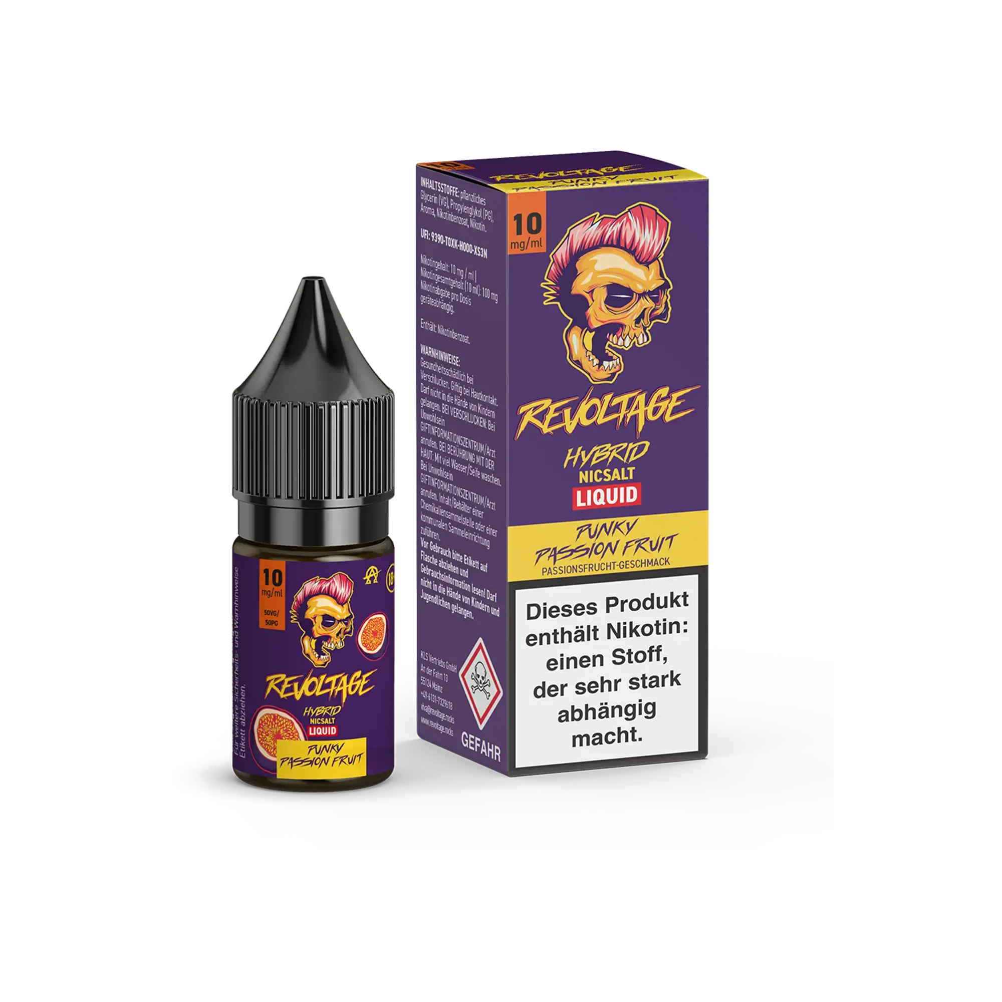 Spezifischer Hinweis für Revoltage Punky Passion Fruit: Dieses Produkt enthält Passionsfruchtaromen. Bitte die Inhaltsstoffangaben auf der Produktverpackung prüfen.