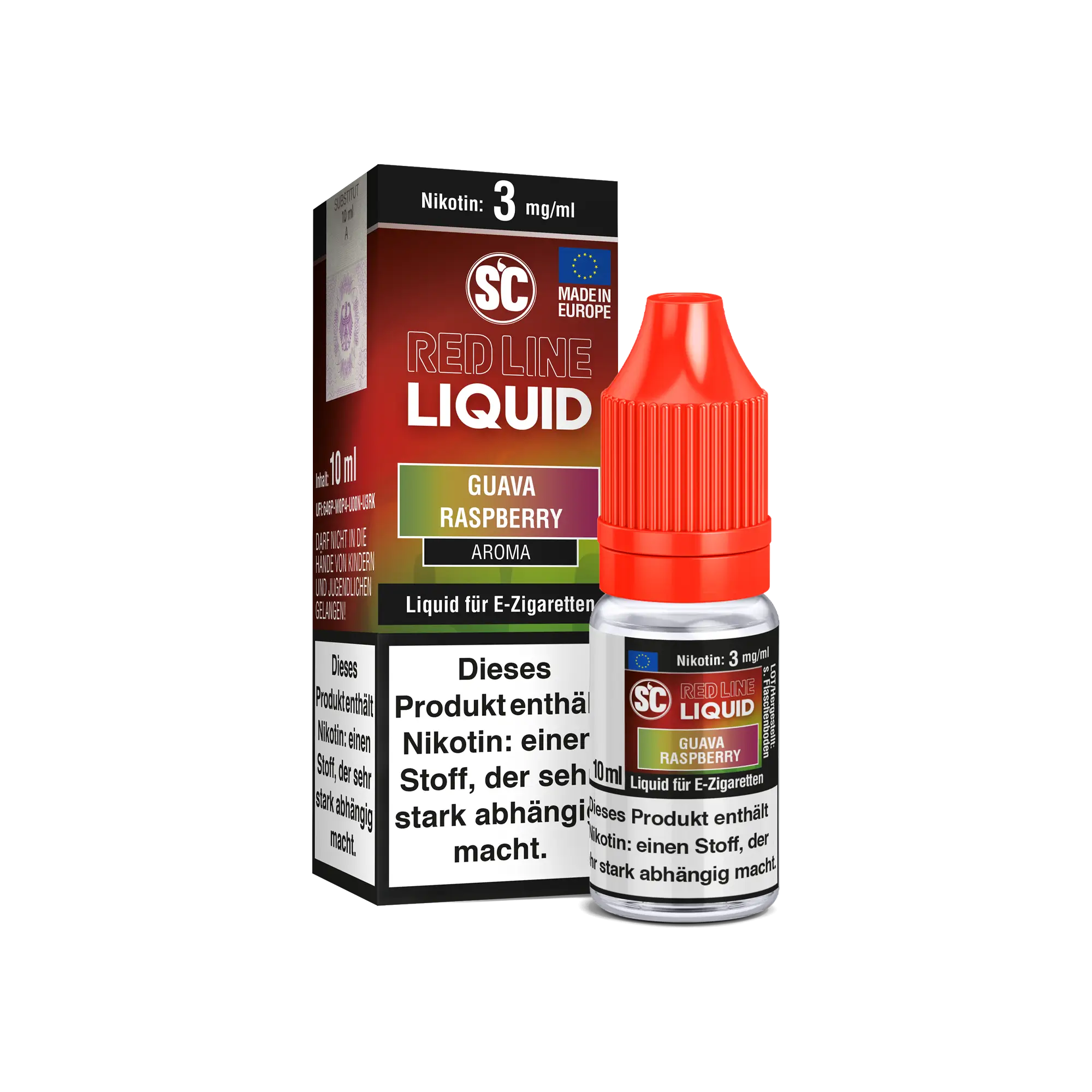 Spezifischer Hinweis für SC Red Line Guava Raspberry: Dieses Produkt enthält Fruchtaromen. Bitte die Inhaltsstoffangaben auf der Produktverpackung prüfen.