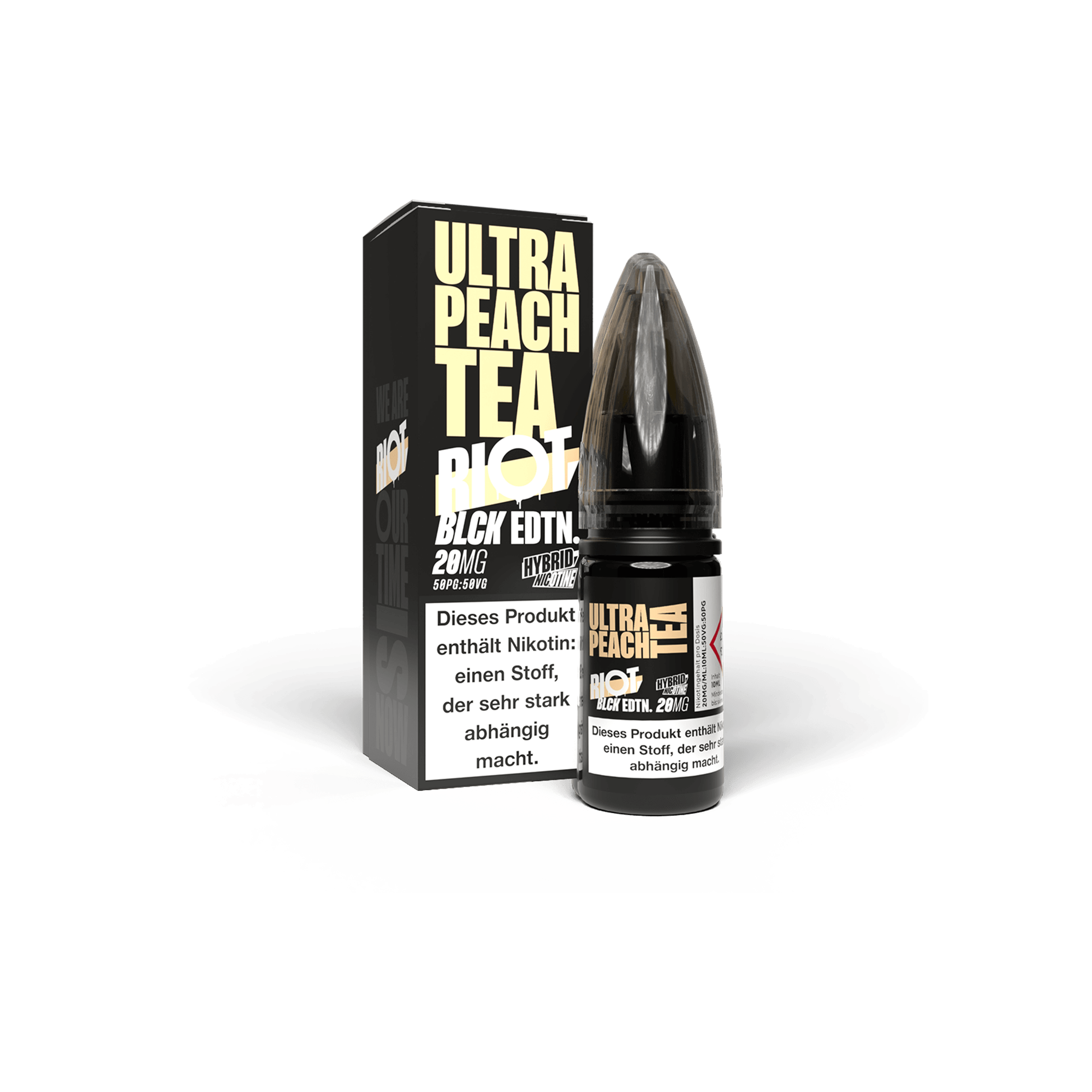 - 1 x Riot Squad Blck Edition Ultra Peach Tea 10 ml Hybrid NicSalt Liquid